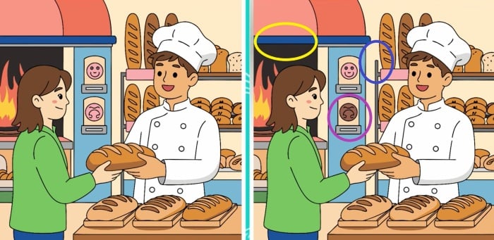Kas olete valmis ennast proovile panema? Siin on kaks pilti pagari ja leivaga. Esmapilgul on need täiesti identsed, kuid kunstnik varjas kolm väikest erinevust. Kas näete neid vaid 25 sekundiga? Pange oma aeg kirja ja kontrollige oma tähelepanelikkust.