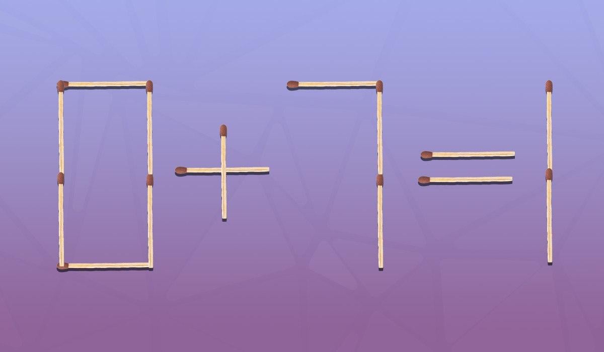 Seega näete allpool pilti, kus võrdus 0+7=1 on asetatud vastete abil. Ilmselgelt on siin viga. Teie ülesanne on võrdsust parandada, tehes väikese muudatuse.