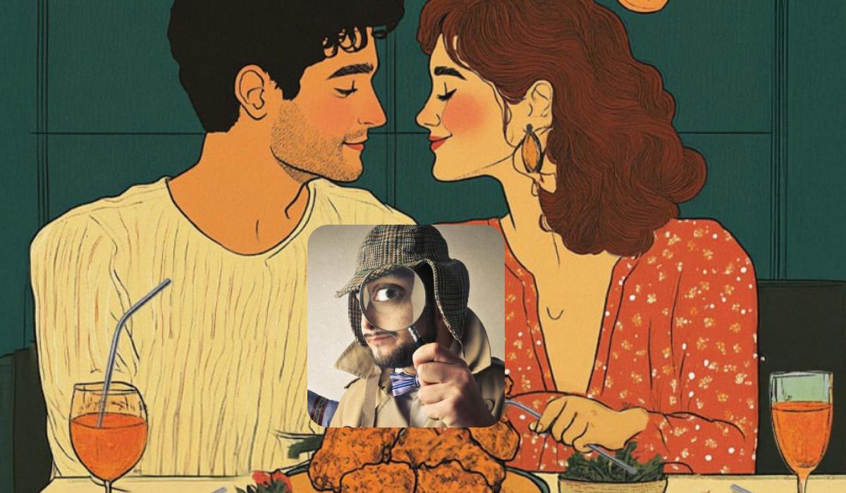 Siin on armunud mees ja naine, kes romantilise õhtusöögi ajal meeldivalt suhtlevad. Tüdrukul on seljas elegantne kleit, poisil aga kerge kampsun. La on näha joogiklaase ja mõnda maitsvat rooga. Asutuse seintel ripuvad maalid ja laes lambid.