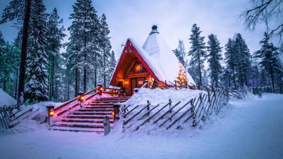 Fotol on maja, milleni jõudmiseks peate ronima suurest trepist üles. Maja ümber on okaspuumets, puude oksad painduvad suurest lumekogusest. Maja lähedal on laternad ning kogu hoov on kaetud paksu lumekihiga, mis katab peaaegu täielikult piirdeaia.