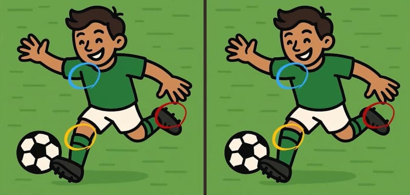 Kas olete valmis ennast proovile panema? Vaadake jalgpalluri kahte pilti. Esmapilgul on need täiesti identsed, kuid neis on peidus kolm peent erinevust. Kas leiate need vaid 23 sekundiga?