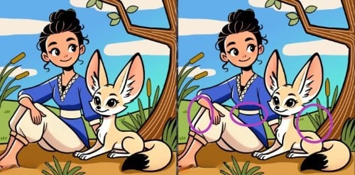 Siin on kaks pilti rebasega tüdrukust. Esmapilgul võivad need tunduda täpselt samad, kuid tegelikult on nende vahel peidus kolm väikest erinevust.