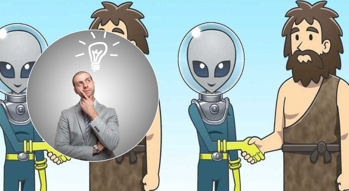 Esitatud pildil näete kahte identset tulnukat ja kahte koopameest.