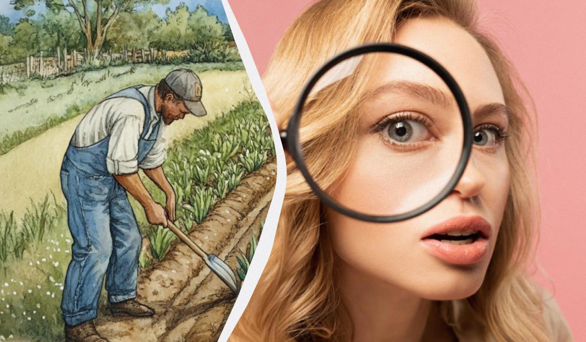Kohe näete maalilise küla lähedal põldu ja kolme meest vabas õhus. Peate kindlaks tegema, mis sellel pildil valesti on.