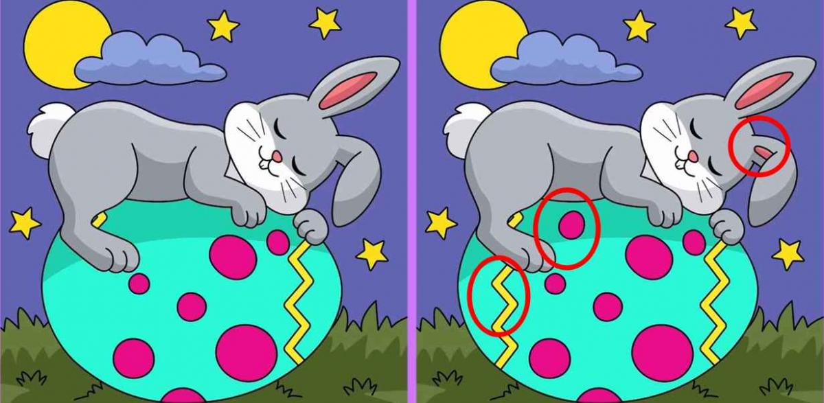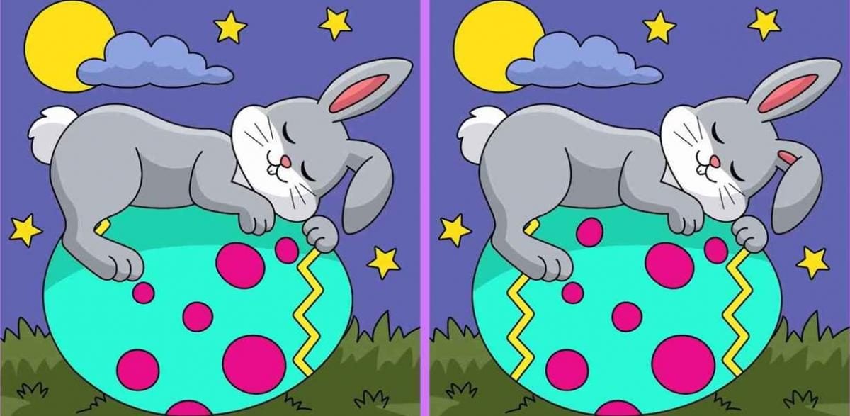 Kas olete valmis ennast proovile panema? Siin on kaks pilti: neil on kujutatud lihavõttemuna peal magavat jänkut. Alguses võib tunduda, et need on täiesti identsed, kuid see pole nii – nende vahel on peidus kolm erinevust.