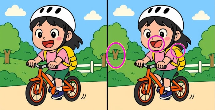 Kas olete valmis ennast proovile panema? Vaadake hoolikalt pilte tüdrukust rattal. Nendes on peidus kolm erinevust ja teie ülesanne on need võimalikult kiiresti tuvastada.