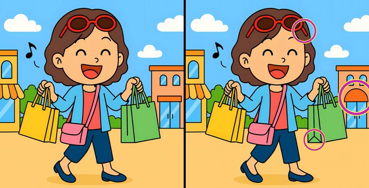 Kas olete valmis oma tähelepanelikkust proovile panema? Siin on kaks pilti tüdrukust poes. Nad näevad välja identsed, kuid see on vaid optiline illusioon – nende vahel on peidetud kolm erinevust.